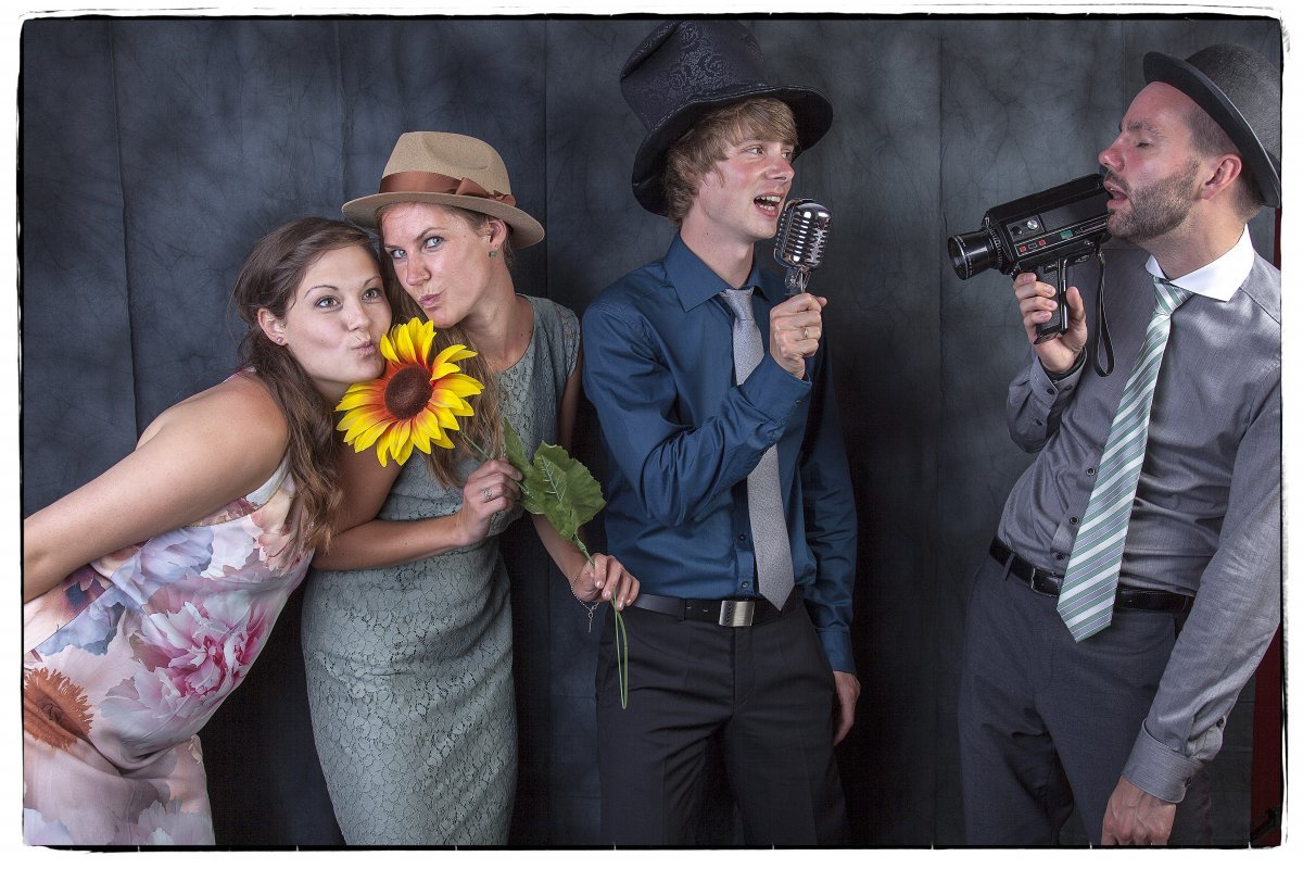 Hierzu gehört auch die Möglichkeit während der abendlichen Feier in einer -Studioecke- Studioaufnahmen mit den Gästen und dem Brautpaar zu machen.