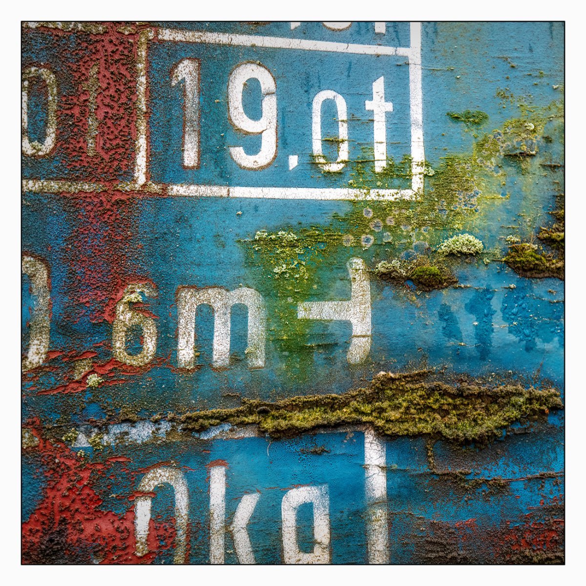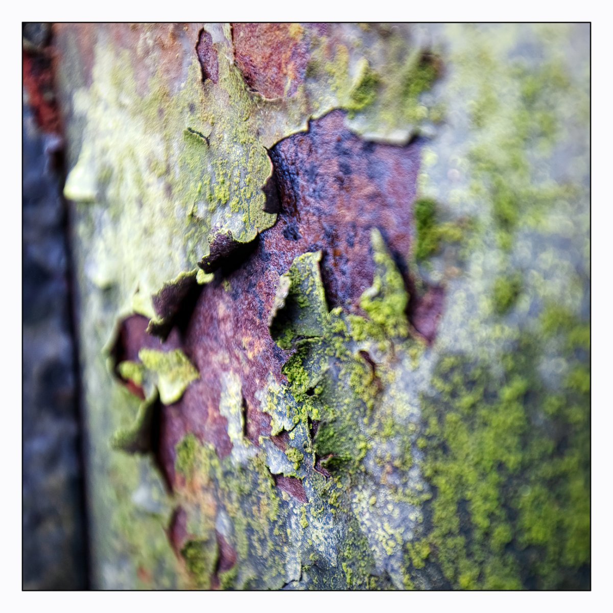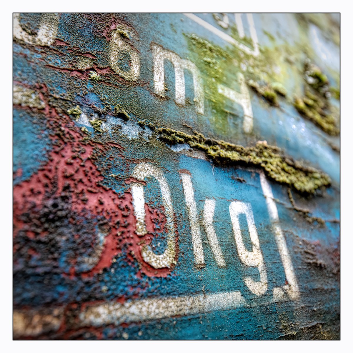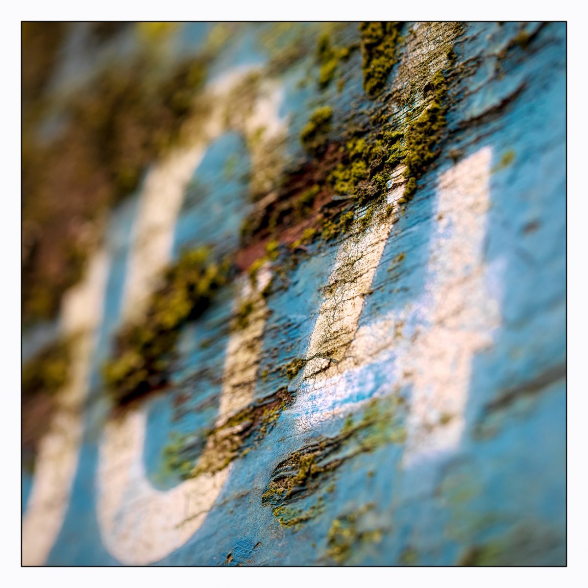 Die Konstellation aus natürlicher, moosiger Verwitterung und menschlicher Gestaltung kann ansprechend sein. So gestalten sich neue Kunstwerke, die durch Auftürmen von Farbe auf Farbe kleine Gebirge und Täler schafft. Witterung durch Hitze und Kälte tun ihr übriges durch feine Risse dazu. Dies wirkt als schaue man auf Landschaften, Landschaften die aus 1ooo Meter Höhe betrachtet werden. Genieße mit mir die Anmutung der kleinen Kunstwerke. Lass Deiner Phantasie freien Lauf.
