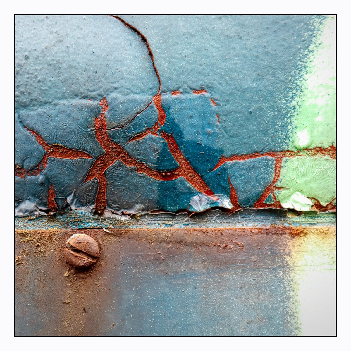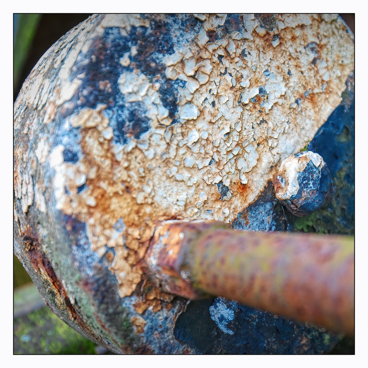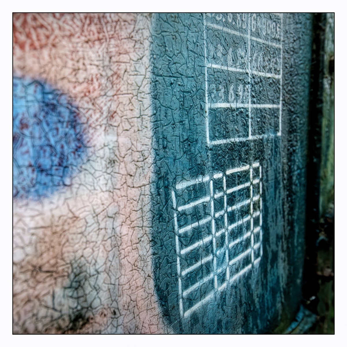Die Konstellation aus natürlicher, moosiger Verwitterung und menschlicher Gestaltung kann ansprechend sein. So gestalten sich neue Kunstwerke, die durch Auftürmen von Farbe auf Farbe kleine Gebirge und Täler schafft. Witterung durch Hitze und Kälte tun ihr übriges durch feine Risse dazu. Dies wirkt als schaue man auf Landschaften, Landschaften die aus 1ooo Meter Höhe betrachtet werden. Genieße mit mir die Anmutung der kleinen Kunstwerke. Lass Deiner Phantasie freien Lauf.