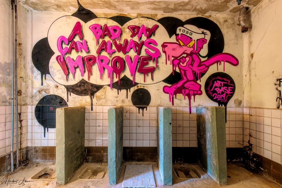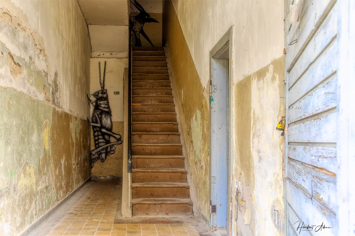 Beginnen wir mit der Irrenanstalt in Neu-Strelitz von 1910, in der Anfang 2019 eine ART-Base mit anschließender feierlichen Eröffnung stattfand. Europaweit wurden Künstler eingeladen, die erste "Irrenanstalt" Deutschlands künstlerisch zu gestalten. Hier zeige ich einige fotografisch eingefangene Wandgestaltungen und Eindrücke des ART-Base Umfeldes.