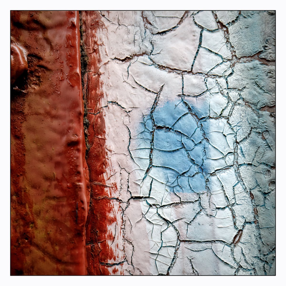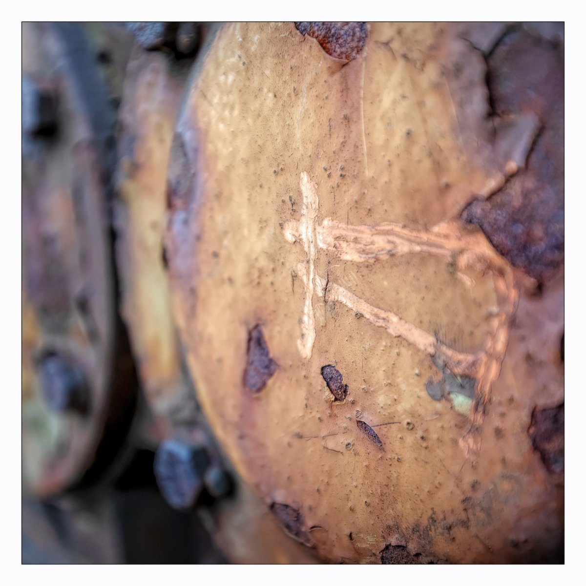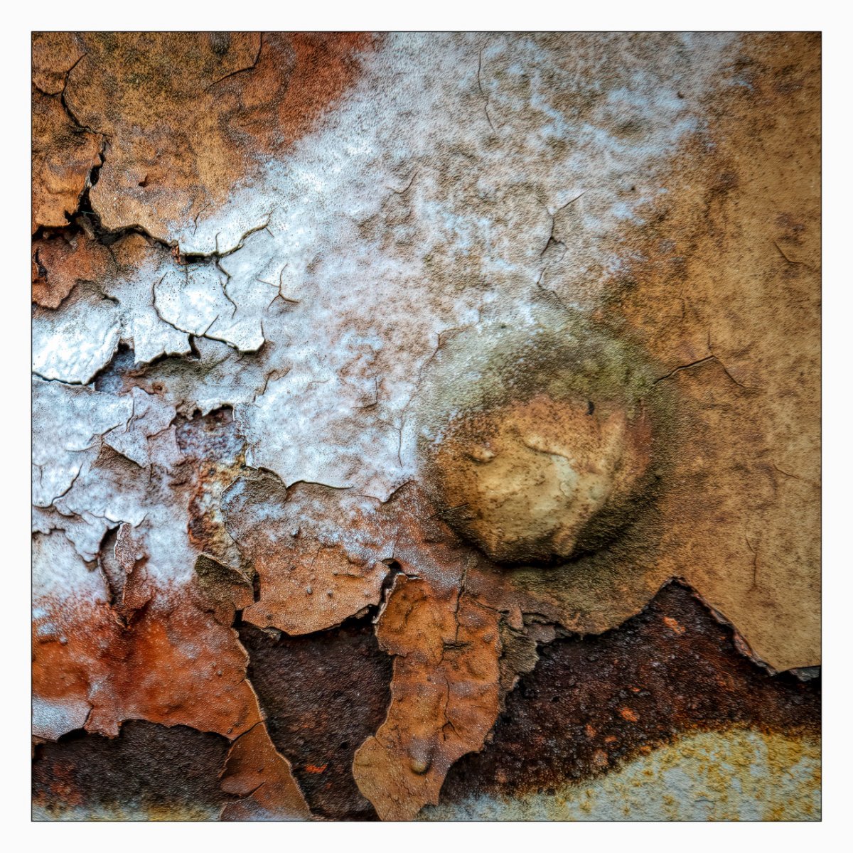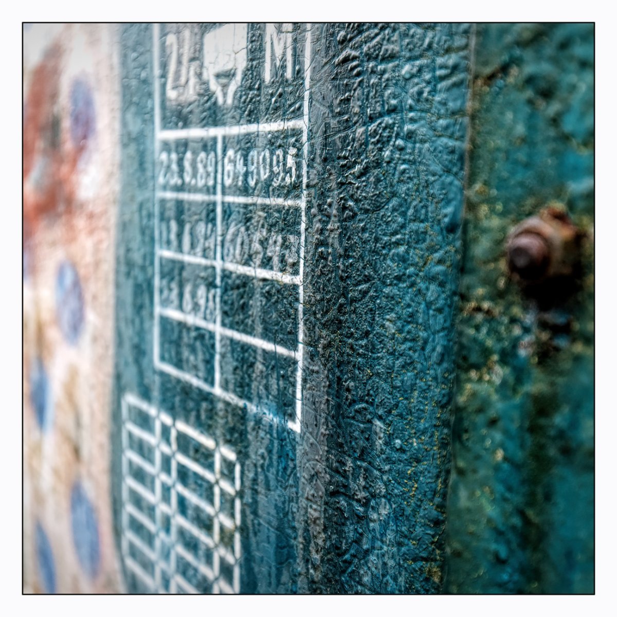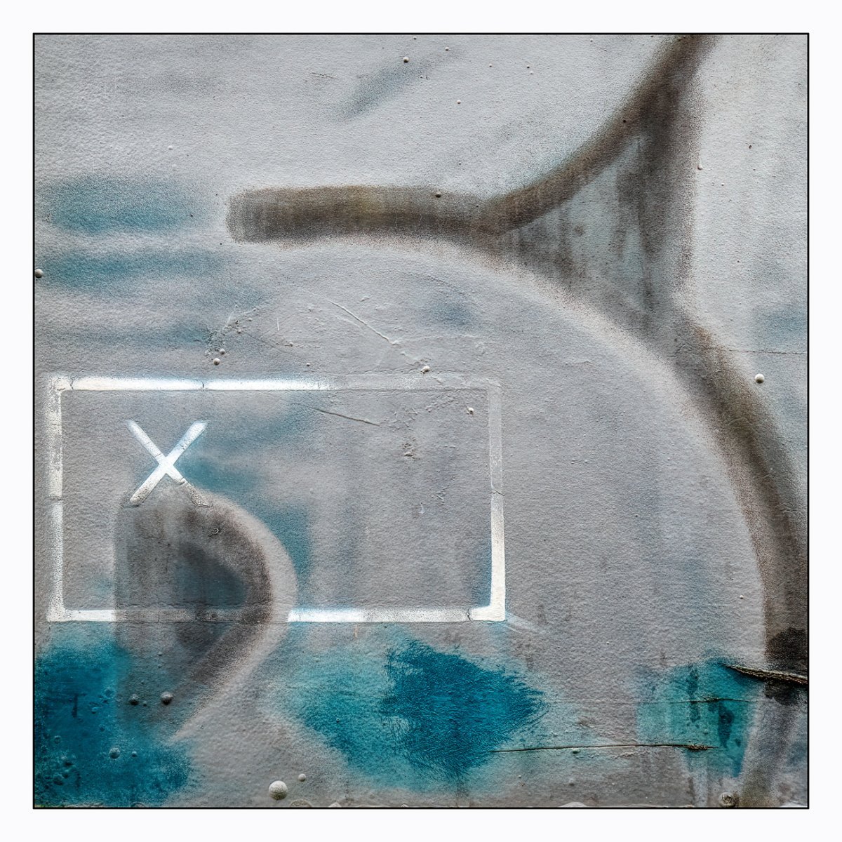Die Konstellation aus natürlicher, moosiger Verwitterung und menschlicher Gestaltung kann ansprechend sein. So gestalten sich neue Kunstwerke, die durch Auftürmen von Farbe auf Farbe kleine Gebirge und Täler schafft. Witterung durch Hitze und Kälte tun ihr übriges durch feine Risse dazu. Dies wirkt als schaue man auf Landschaften, Landschaften die aus 1ooo Meter Höhe betrachtet werden. Genieße mit mir die Anmutung der kleinen Kunstwerke. Lass Deiner Phantasie freien Lauf.