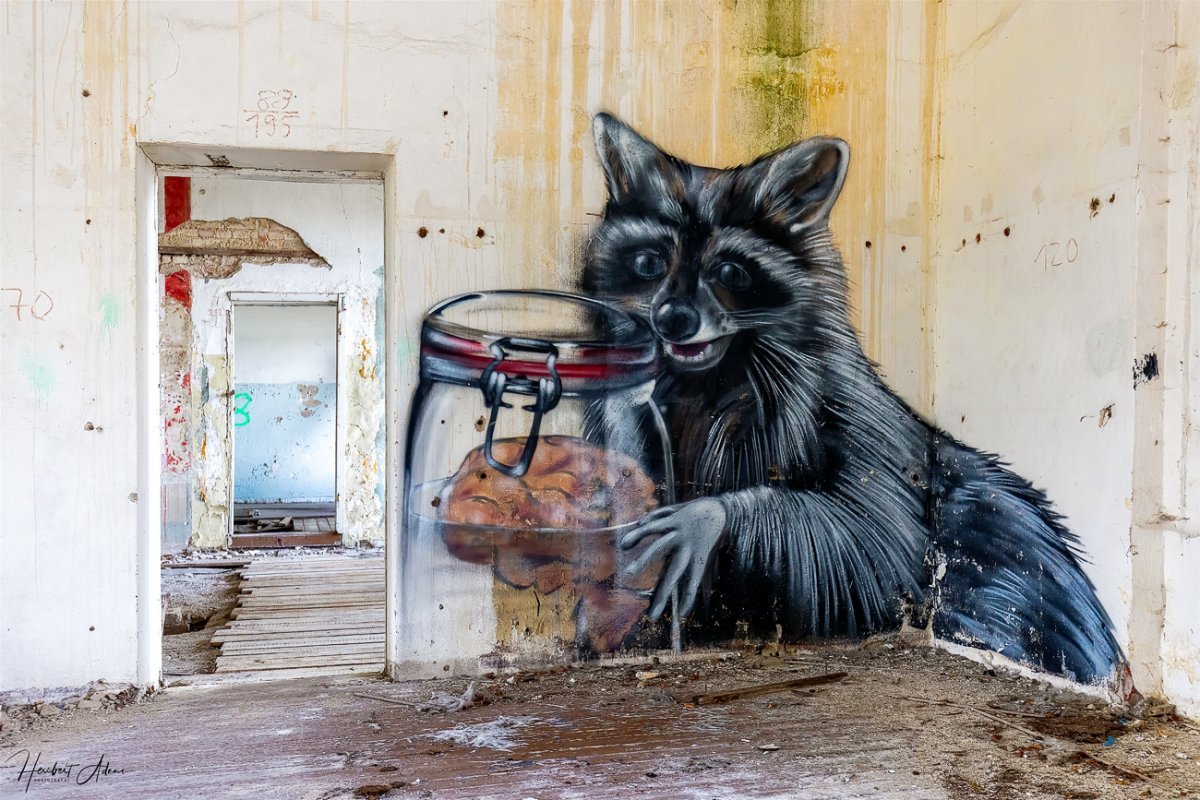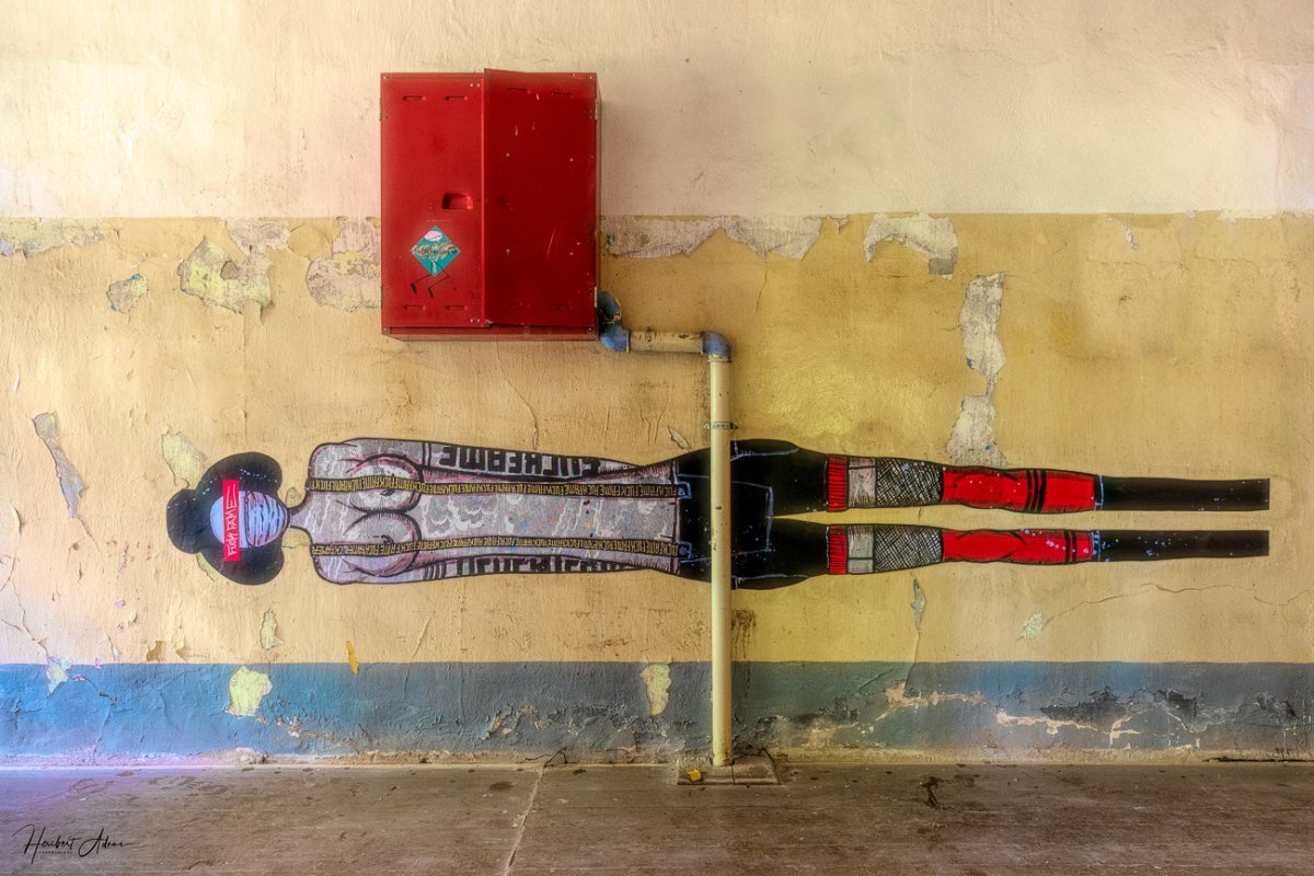 Beginnen wir mit der Irrenanstalt in Neu-Strelitz von 1910, in der Anfang 2019 eine ART-Base mit anschließender feierlichen Eröffnung stattfand. Europaweit wurden Künstler eingeladen, die erste "Irrenanstalt" Deutschlands künstlerisch zu gestalten. Hier zeige ich einige fotografisch eingefangene Wandgestaltungen und Eindrücke des ART-Base Umfeldes.